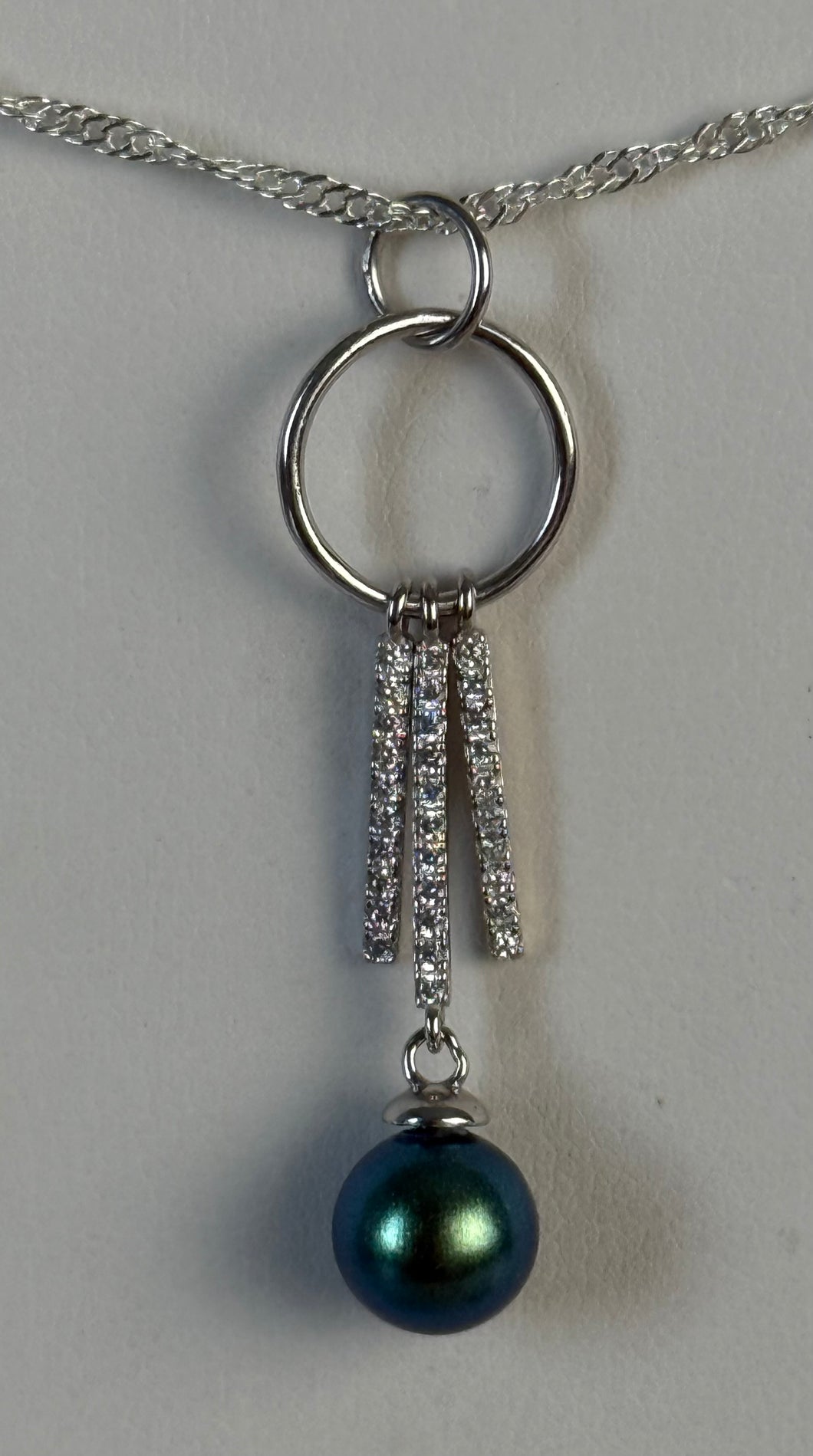 Sterling Silver Mounted Becky Pendant With 18” Sterling Silver Plated Chain. Holds Regular Pearl OR An Edison Depending On Size