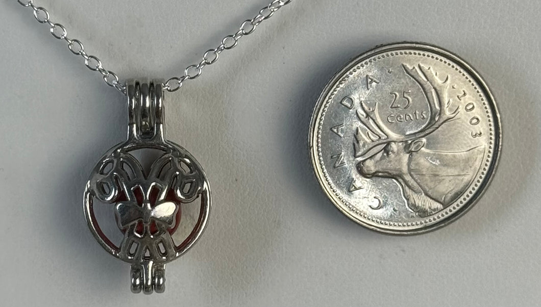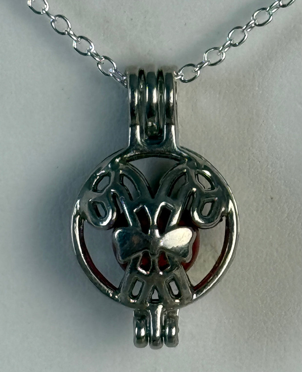 Sterling Silver Plated Candy Cane Cage With 18” Sterling Silver Plated Chain.
