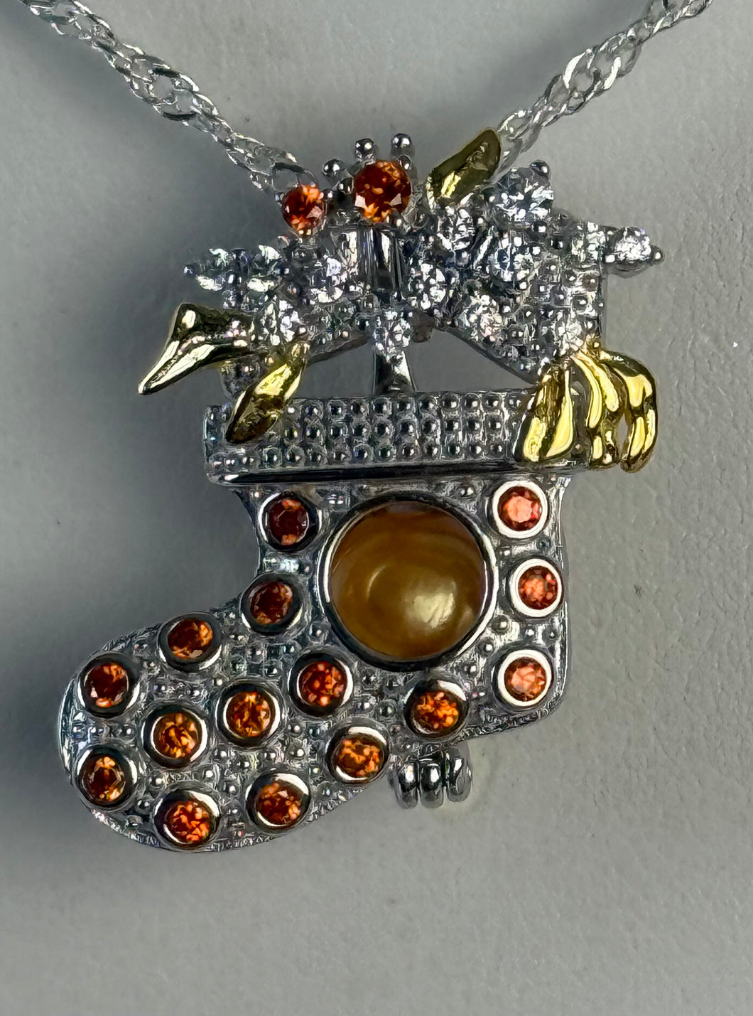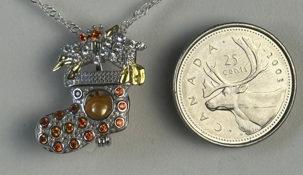 Sterling Silver Christmas Stocking Cage -comes with 18” Sterling Silver Plated Chain